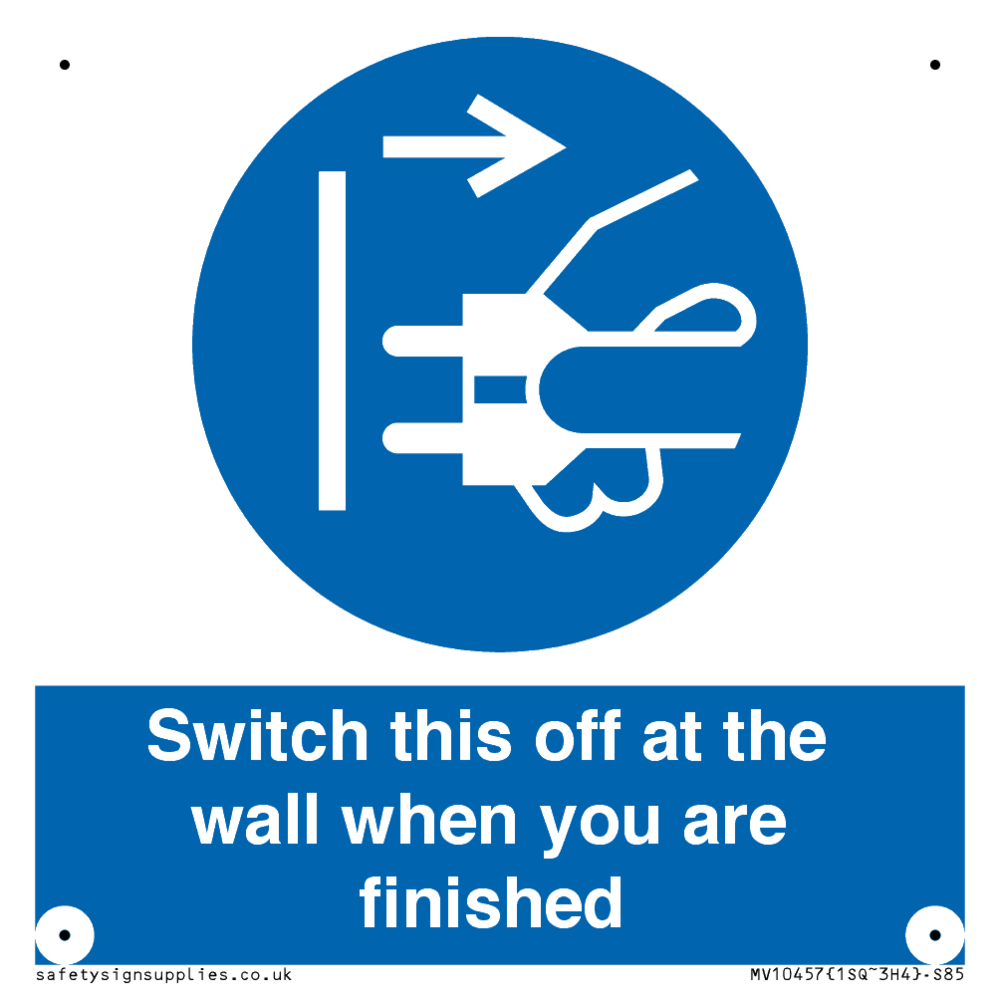 Switch this off at the wall when you are finished Sign