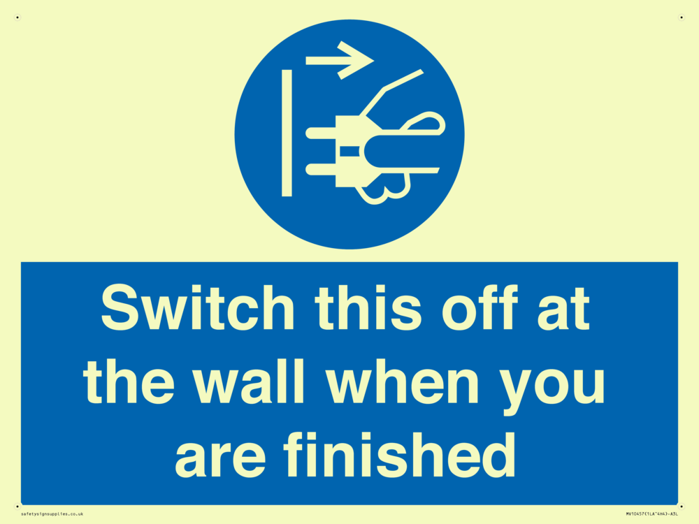 Switch this off at the wall when you are finished Sign