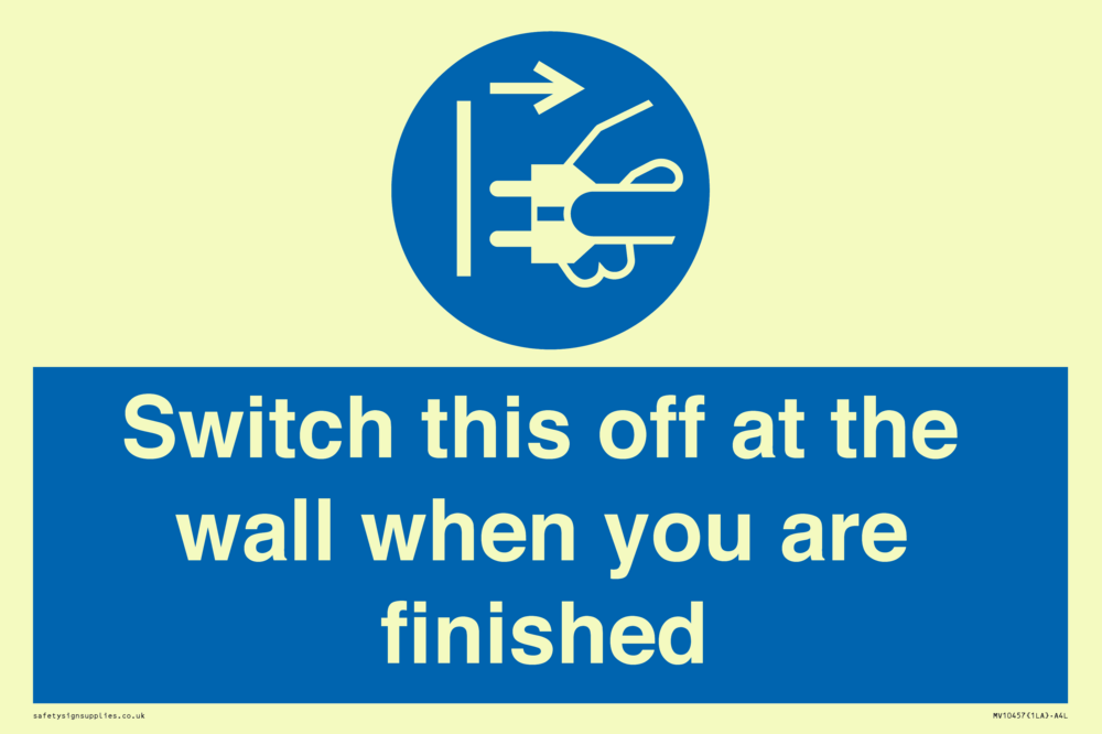 Switch this off at the wall when you are finished Sign