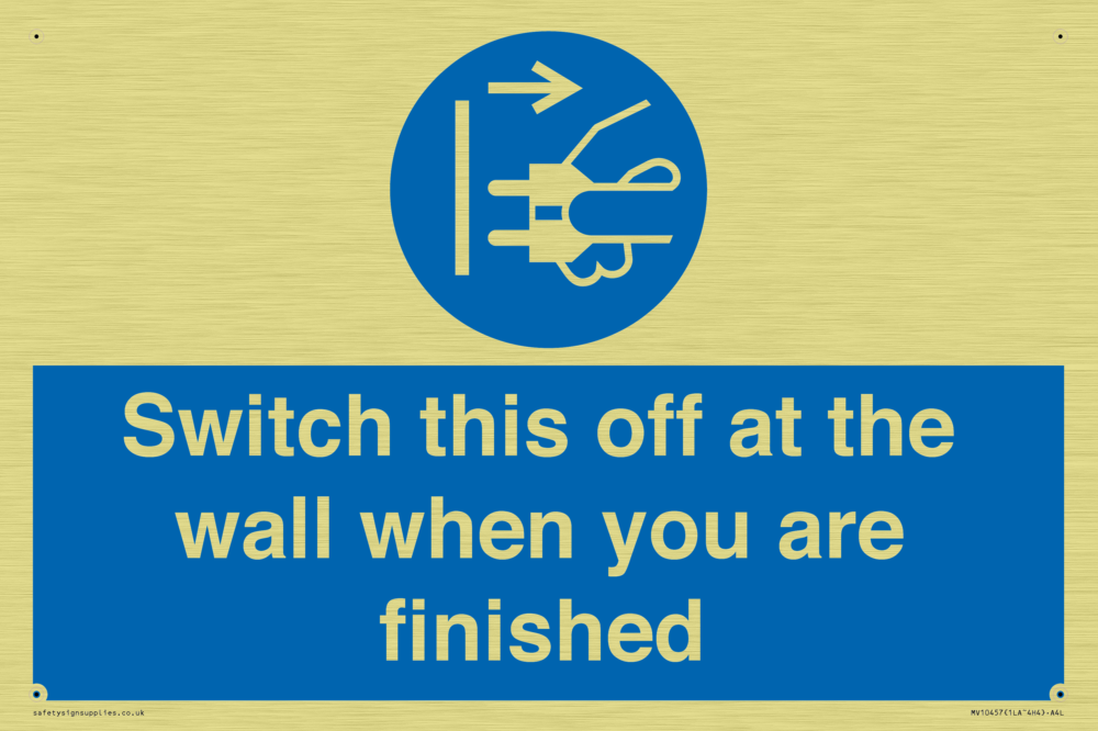 Switch this off at the wall when you are finished Sign