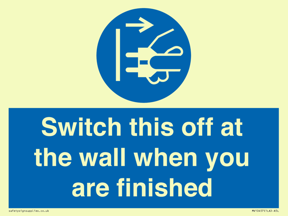 Switch this off at the wall when you are finished Sign