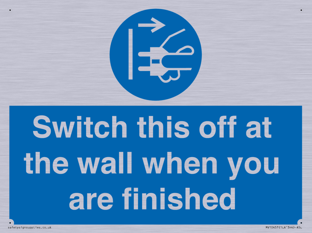 Sign Text: Switch this off at the wall when you are finished
