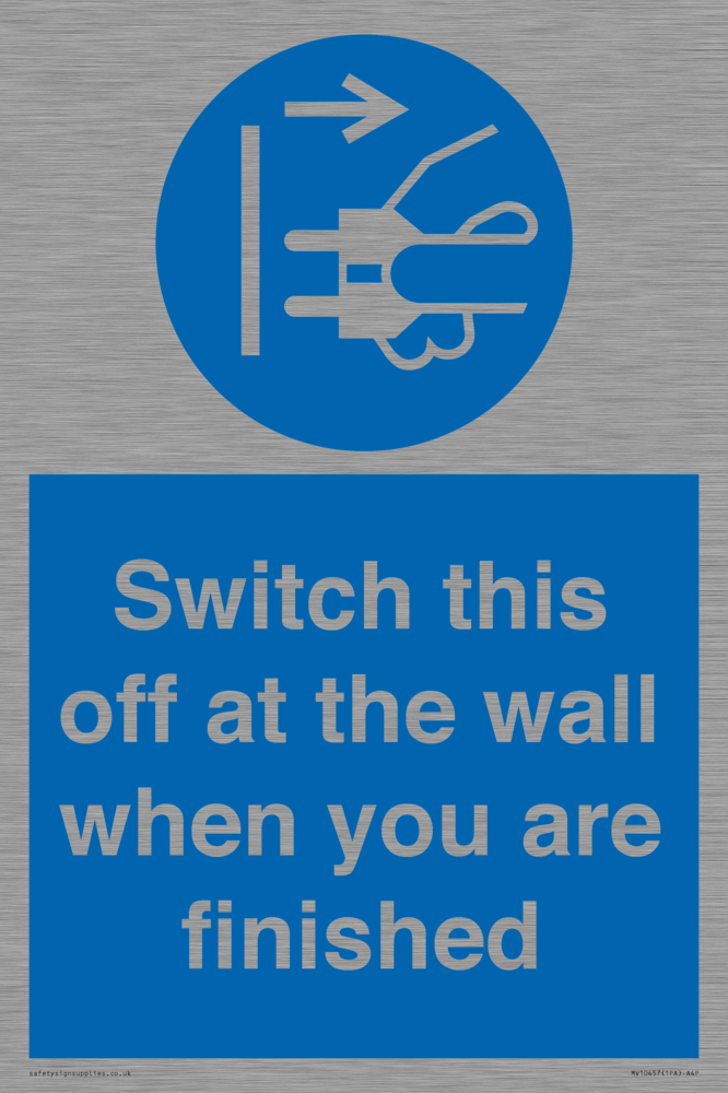 Switch this off at the wall when you are finished Sign