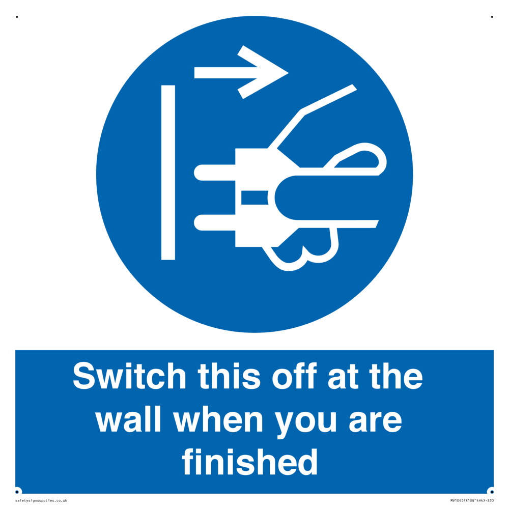 Switch this off at the wall when you are finished Sign