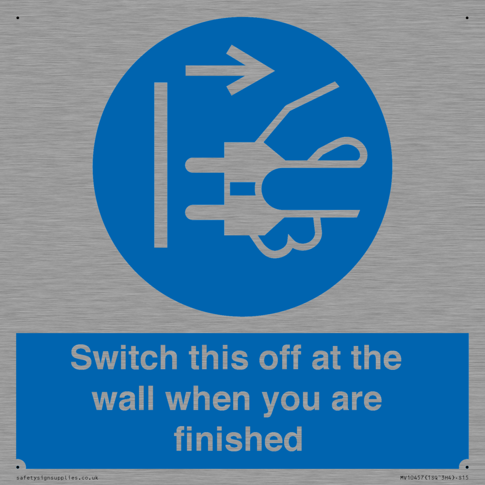 Switch this off at the wall when you are finished Sign