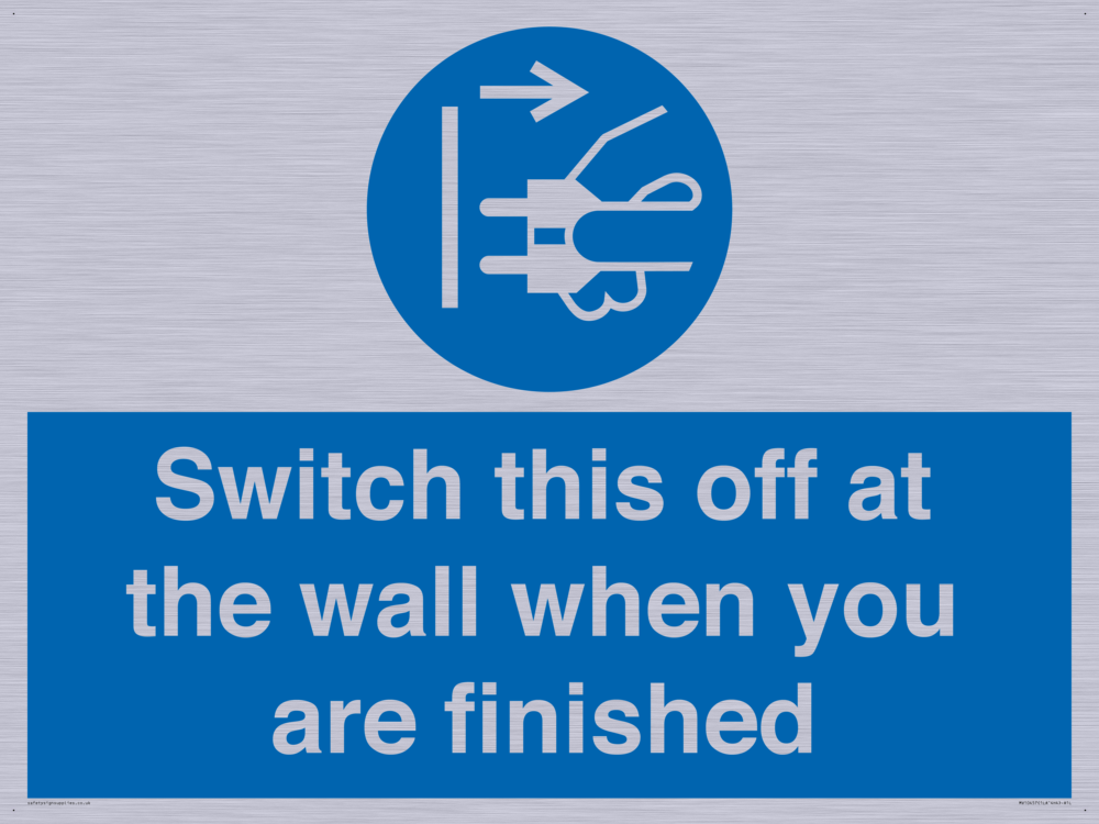 Sign Text: Switch this off at the wall when you are finished