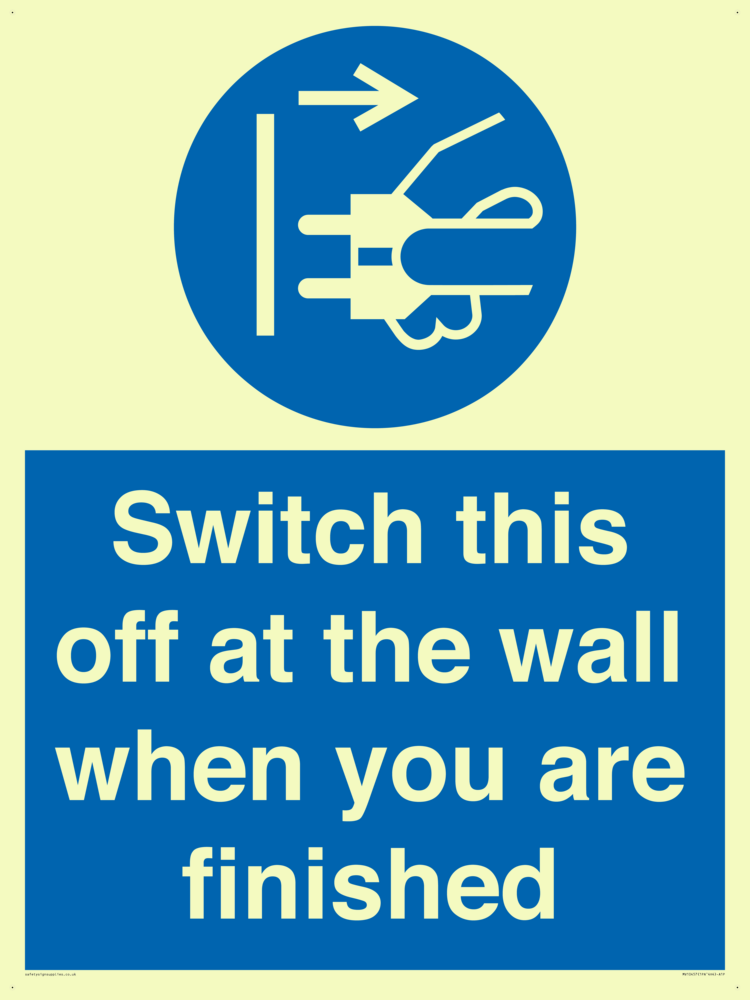 Switch this off at the wall when you are finished Sign