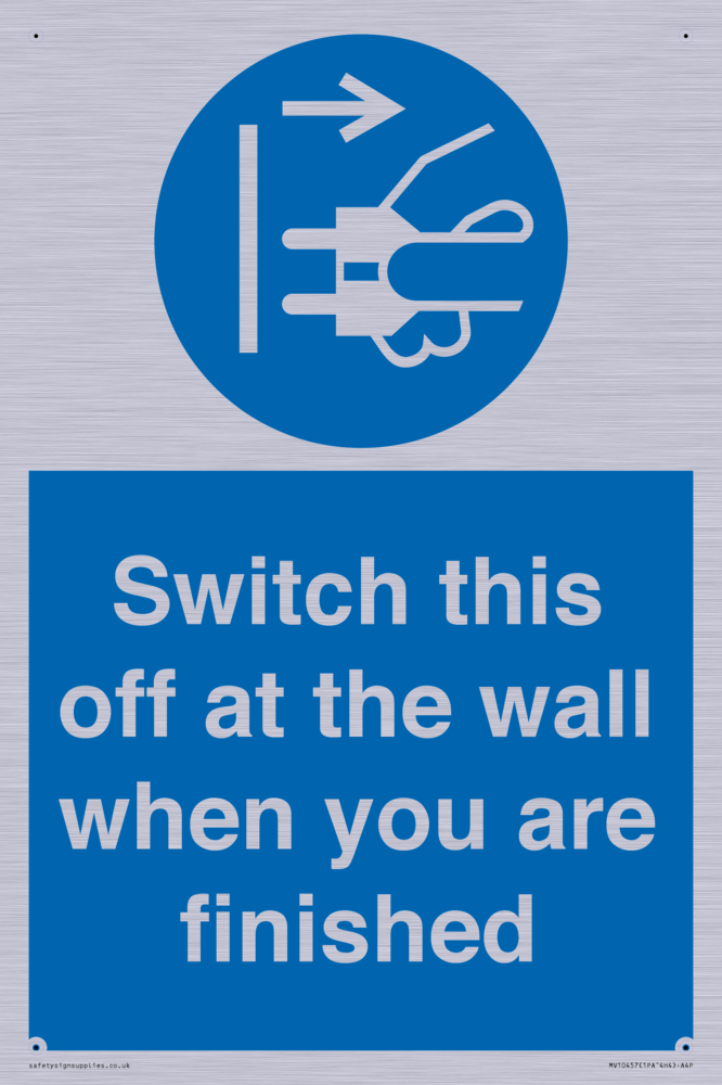 Switch this off at the wall when you are finished Sign