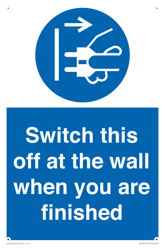 Sign Text: Switch this off at the wall when you are finished