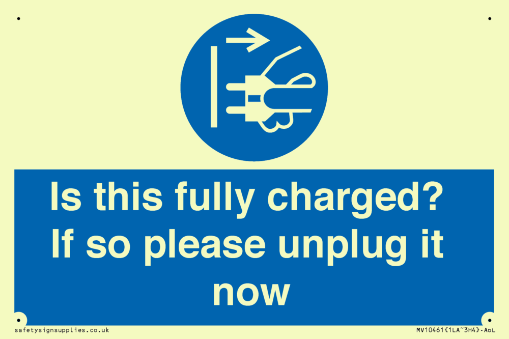 Is this fully charged? If so please unplug it now Sign
