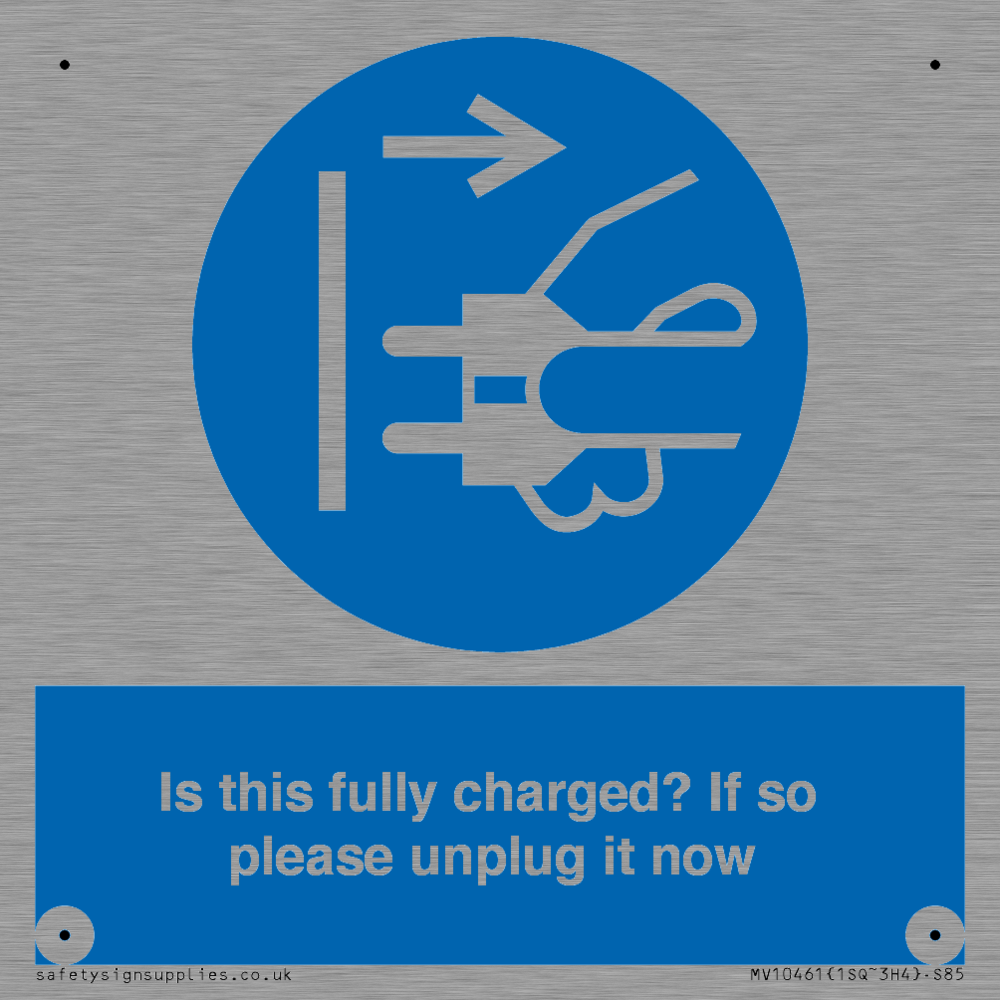 Is this fully charged? If so please unplug it now Sign