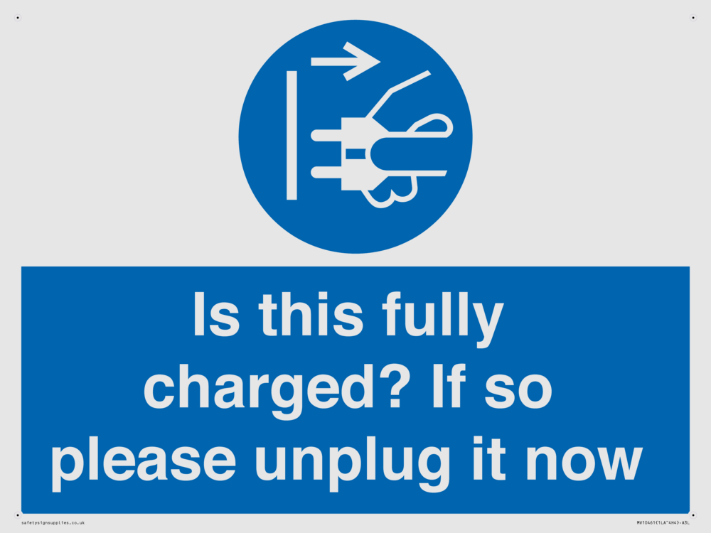 Is this fully charged? If so please unplug it now Sign