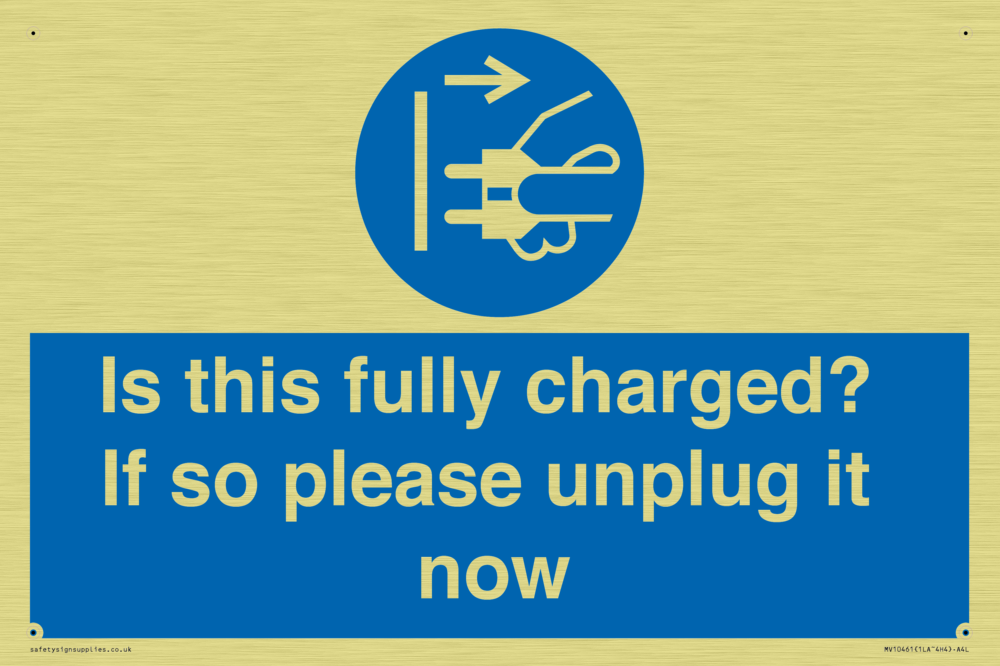 Is this fully charged? If so please unplug it now Sign