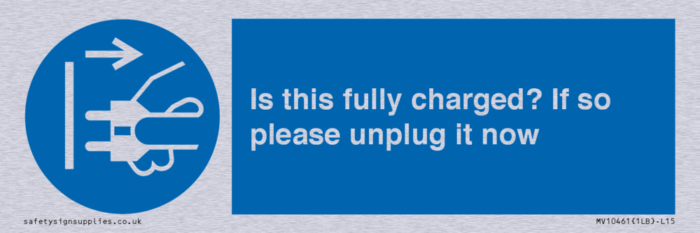 Is this fully charged? If so please unplug it now Sign