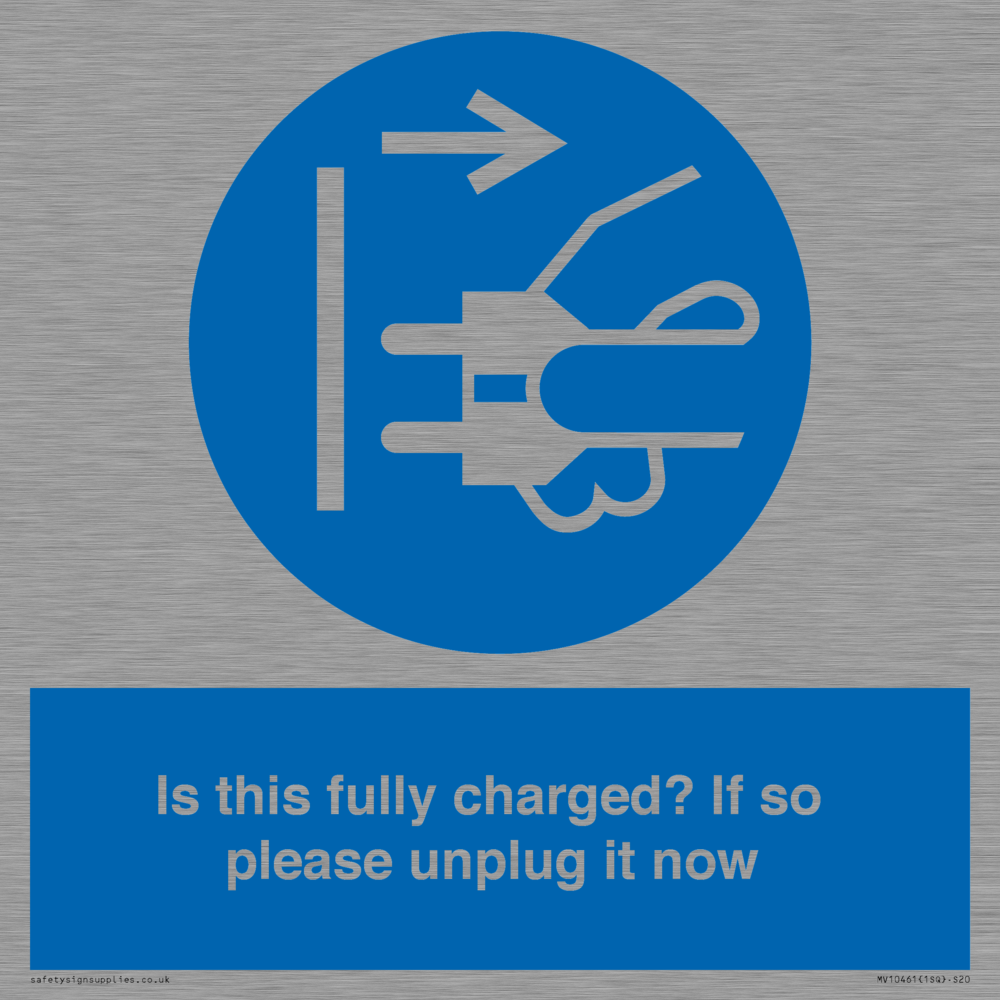 Is this fully charged? If so please unplug it now Sign