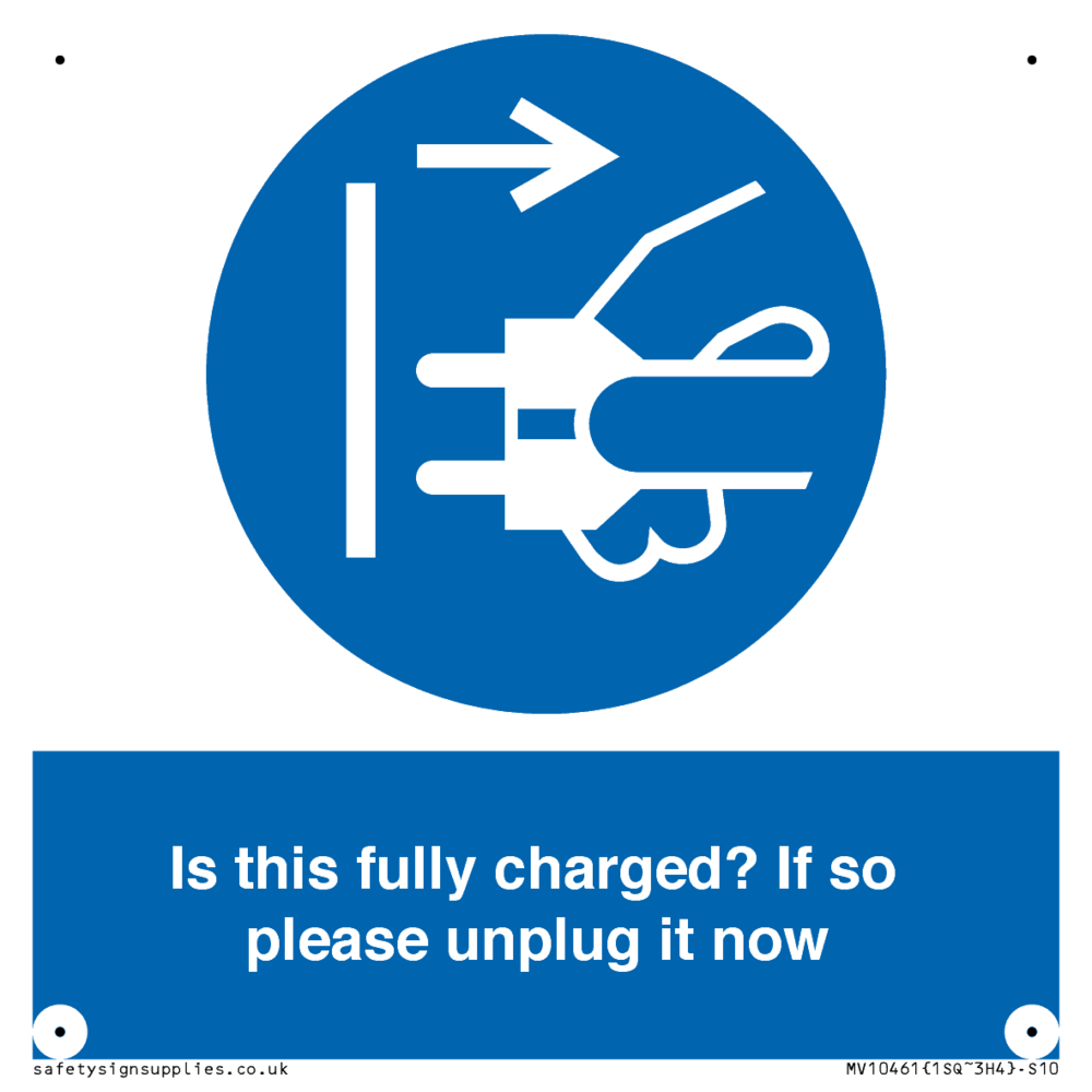 Is this fully charged? If so please unplug it now Sign