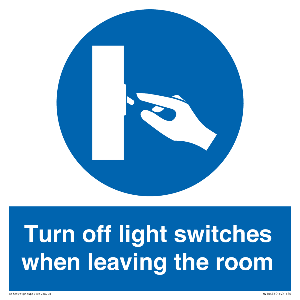 Turn off light switches when leaving the room Sign