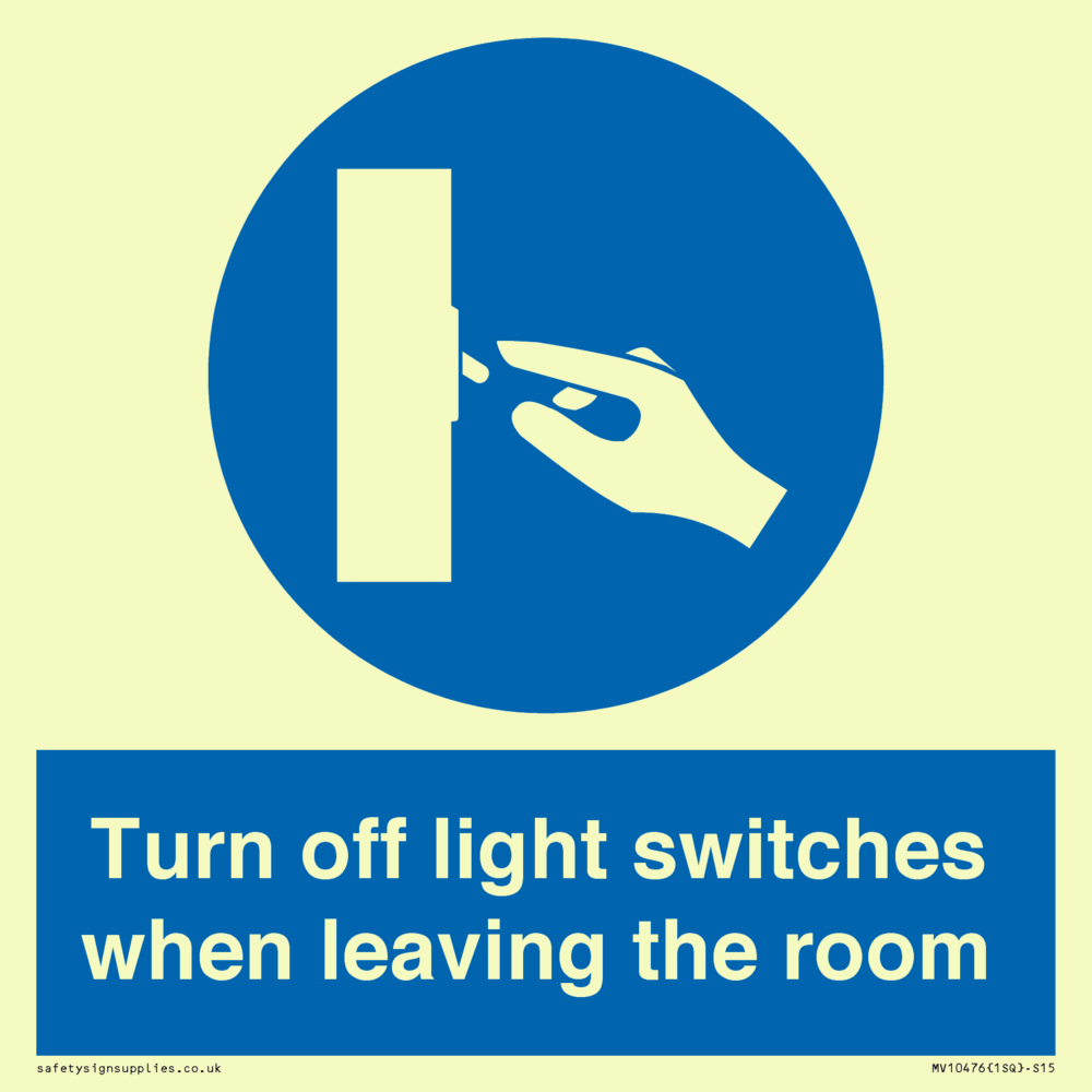Turn off light switches when leaving the room Sign