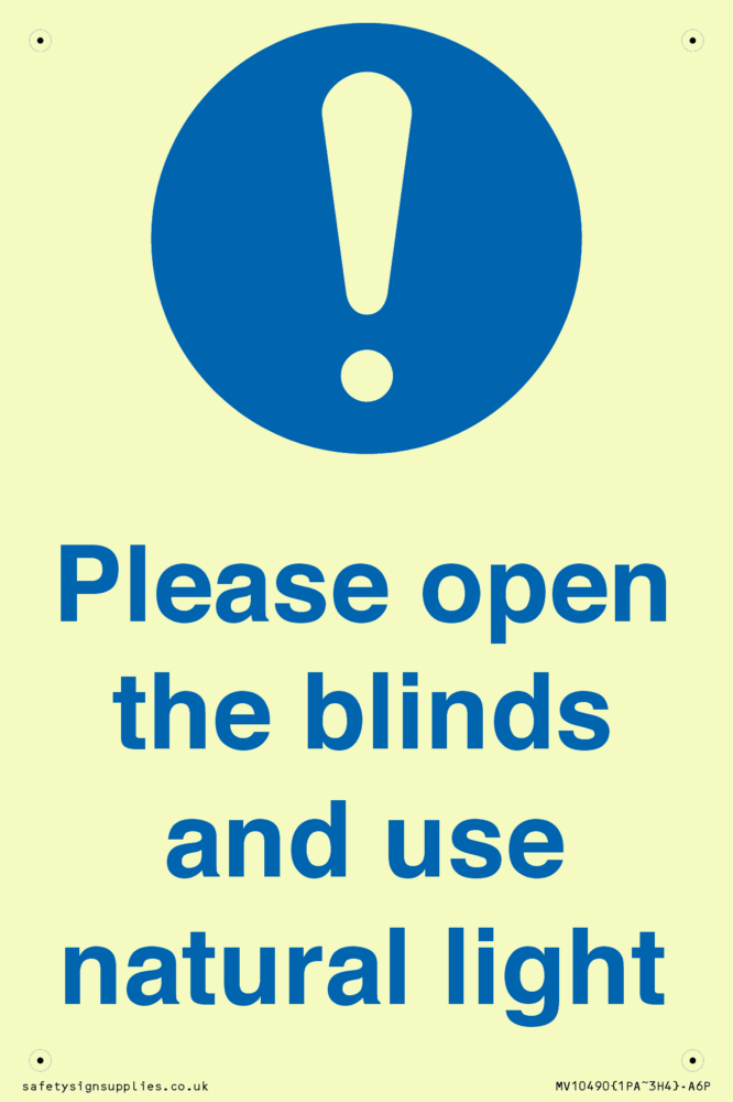 Please open the blinds and use natural light Sign