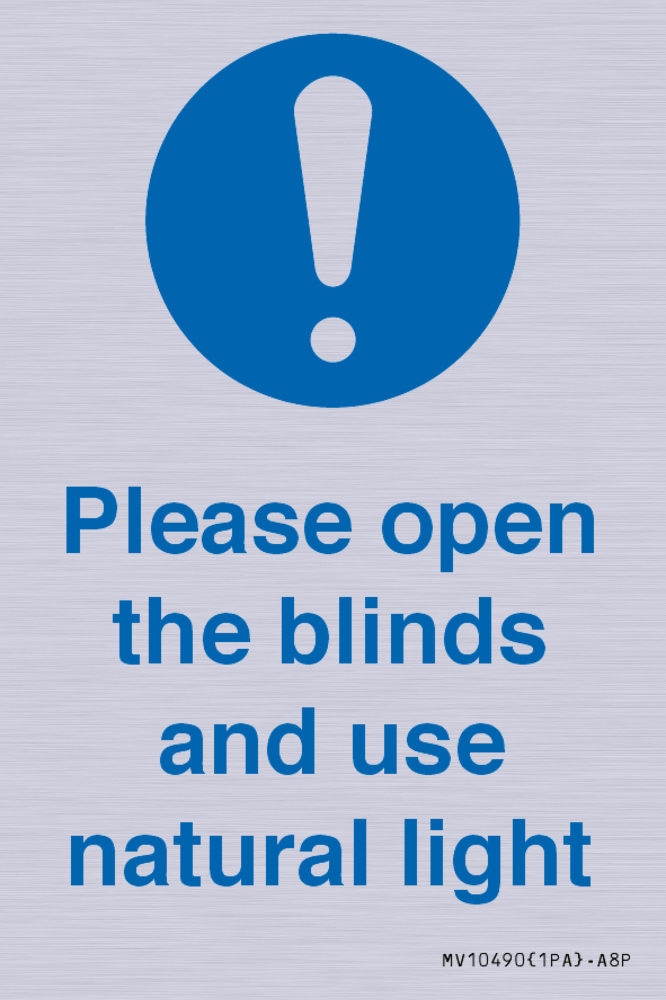 Please open the blinds and use natural light Sign