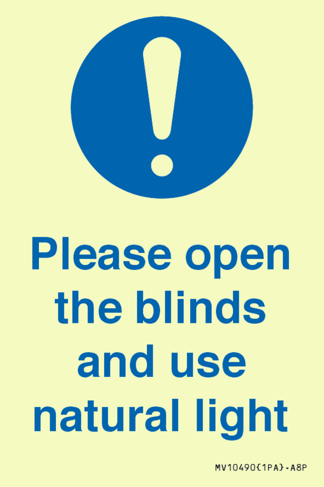 Please open the blinds and use natural light Sign