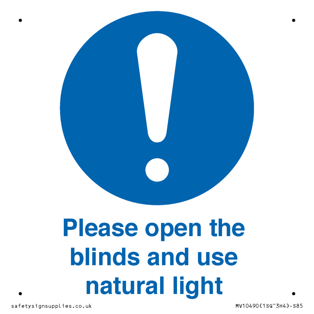 Sign Text: Please open the blinds and use natural light
