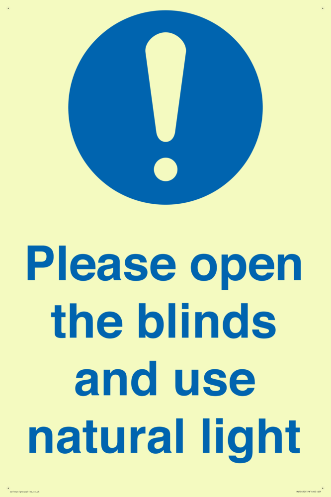 Please open the blinds and use natural light Sign