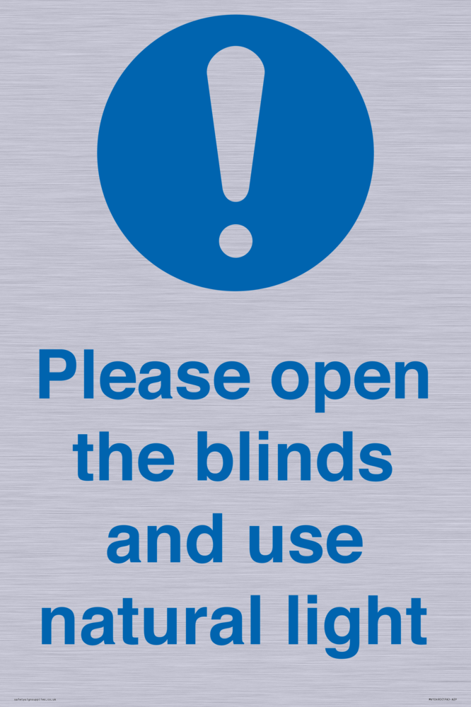 Please open the blinds and use natural light Sign