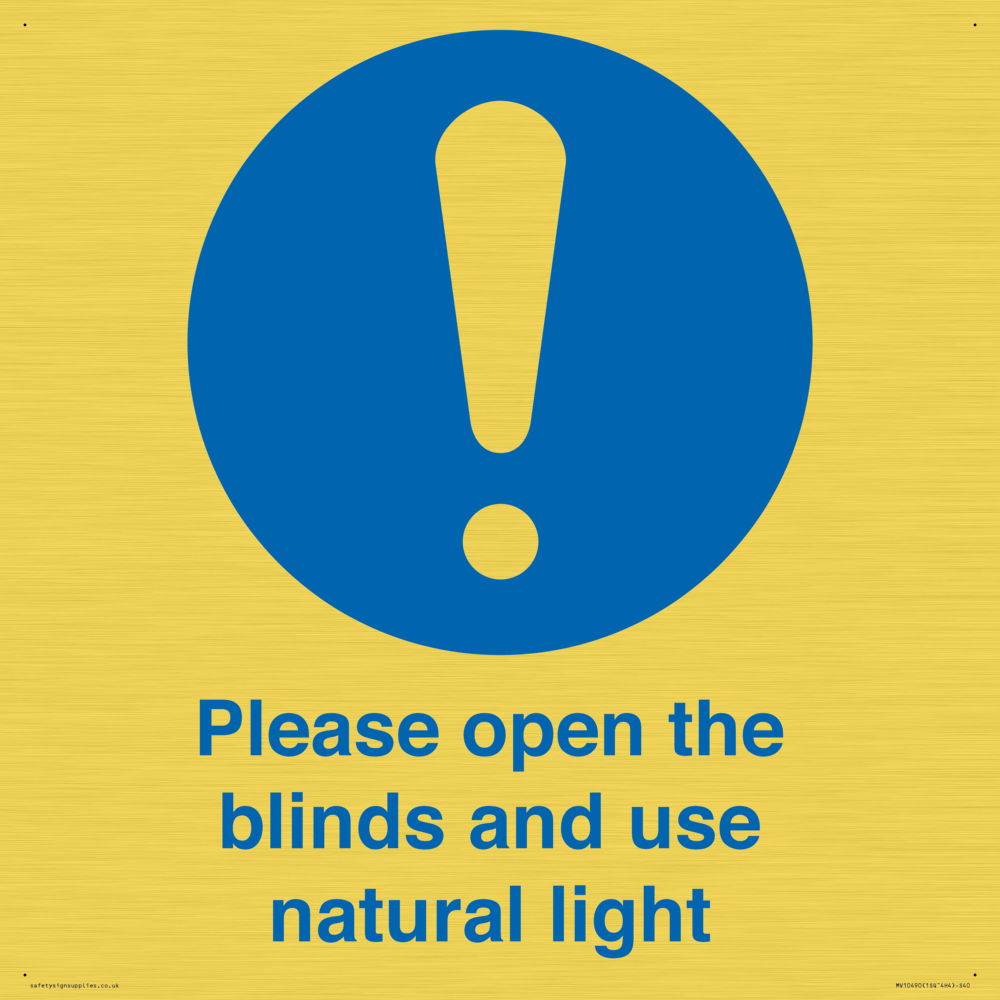 Please open the blinds and use natural light Sign