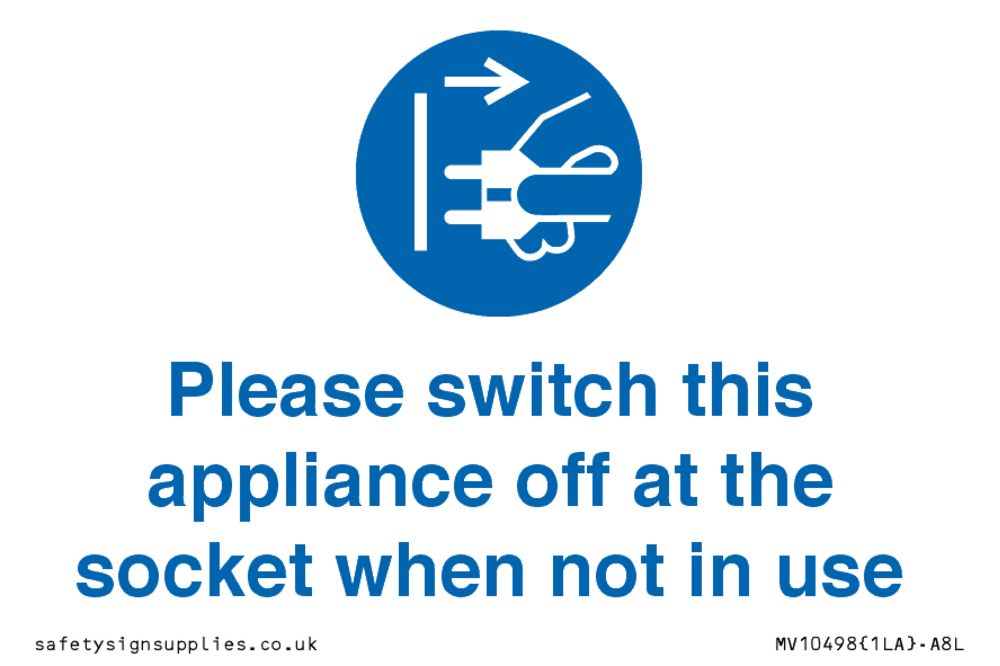 Please switch this appliance off at the socket when not in use Sign