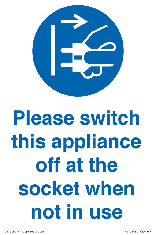 Please switch this appliance off at the socket when not in use Sign