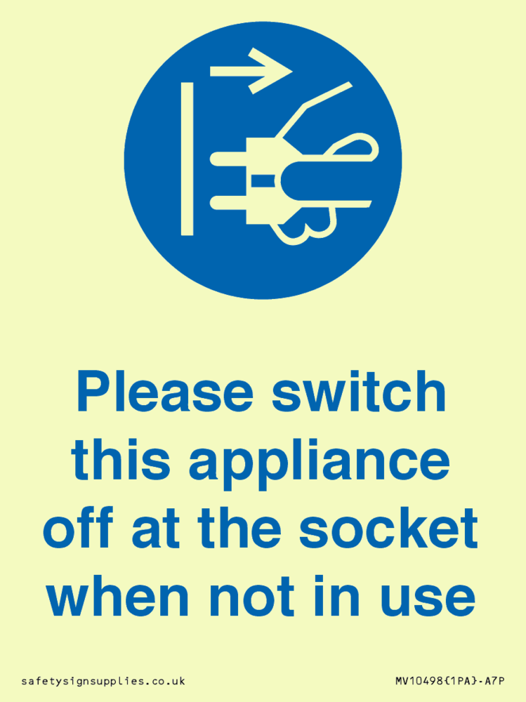 Please switch this appliance off at the socket when not in use Sign