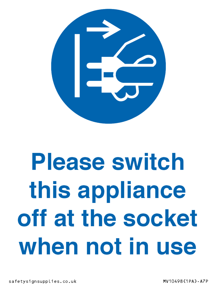 Please switch this appliance off at the socket when not in use Sign