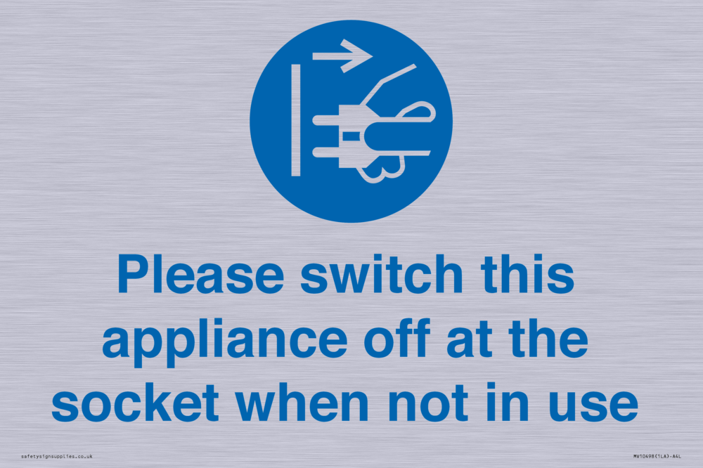 Please switch this appliance off at the socket when not in use Sign