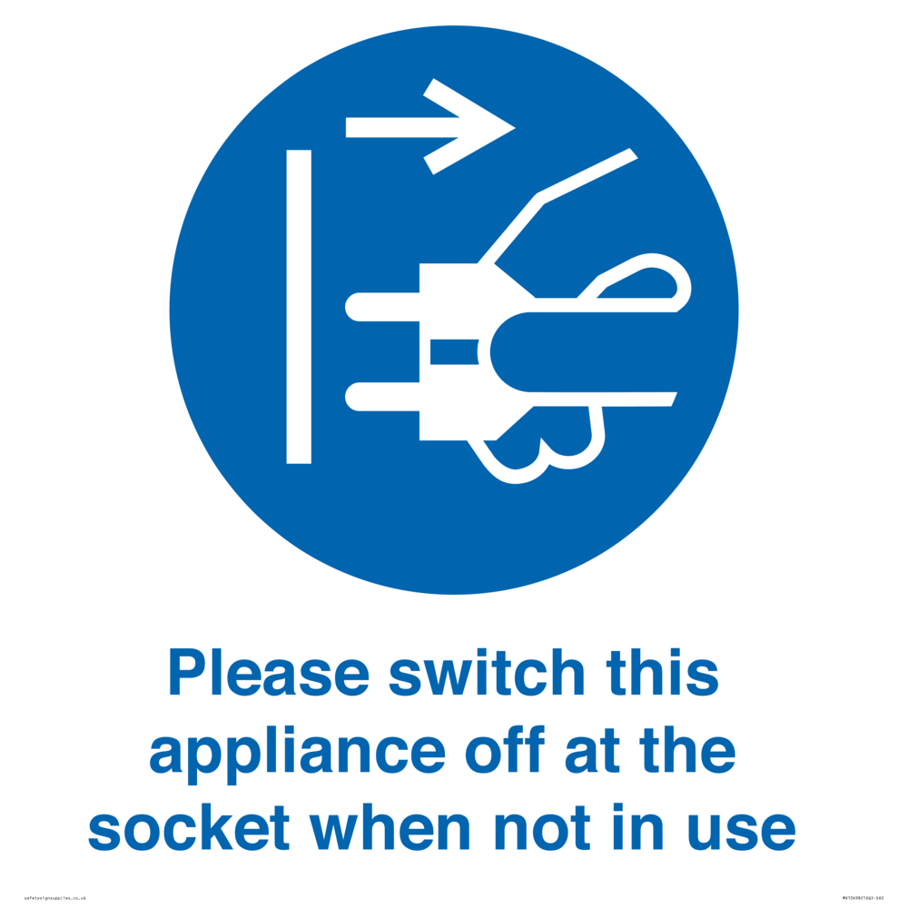 Please switch this appliance off at the socket when not in use Sign