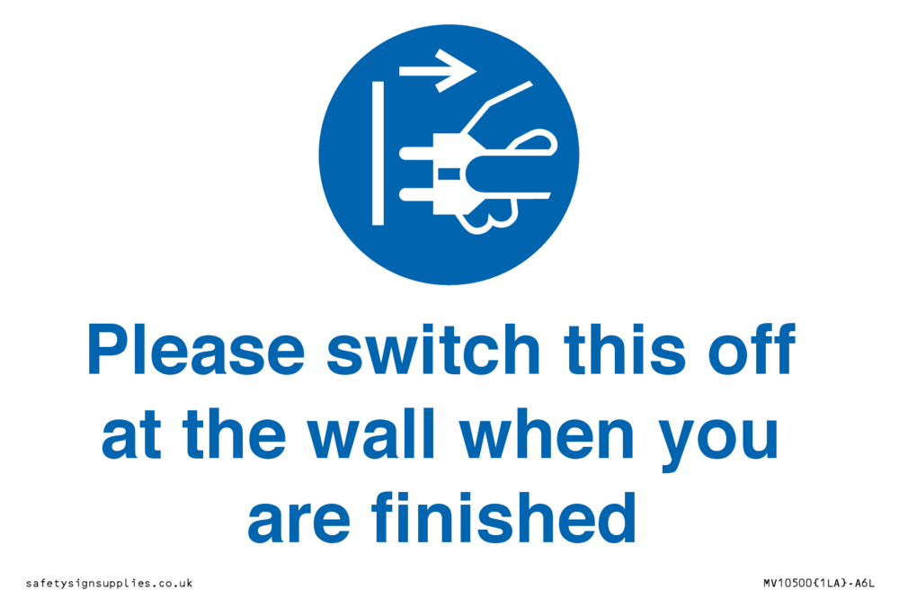 Please switch this off at the wall when you are finished