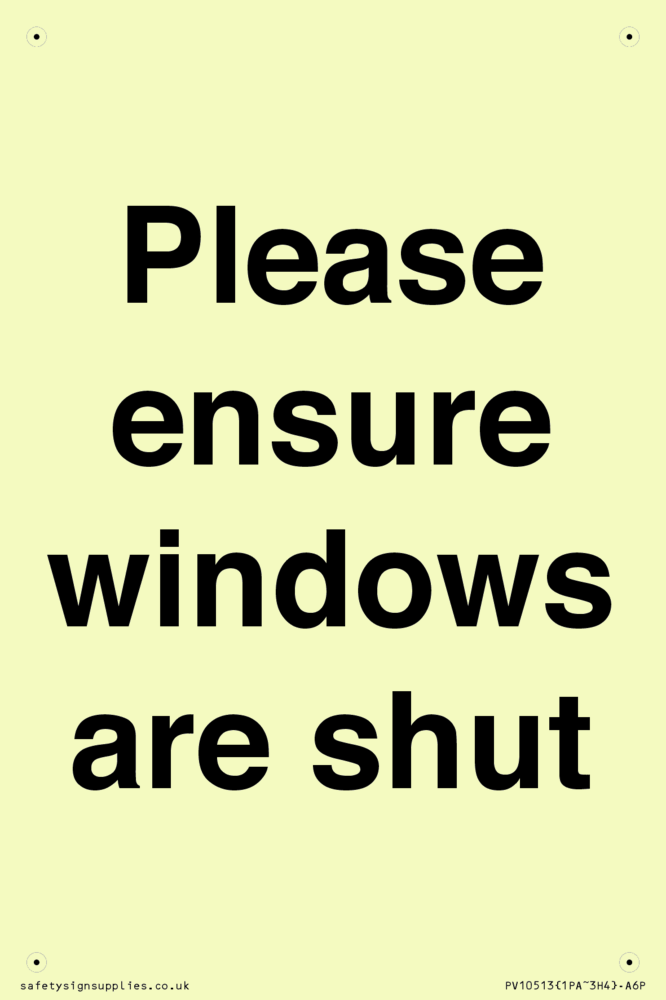 Please ensure windows are shut Sign
