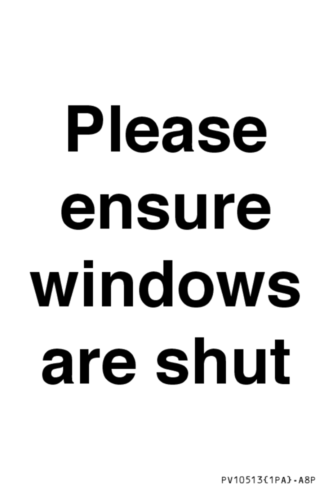 Please ensure windows are shut Sign