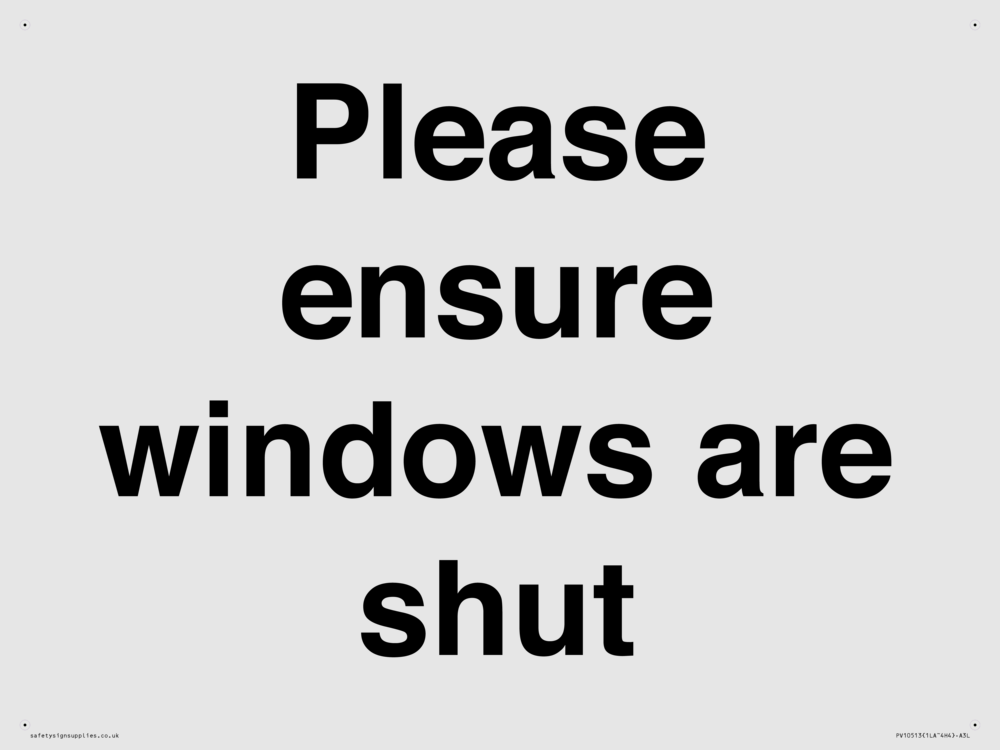 Please ensure windows are shut Sign