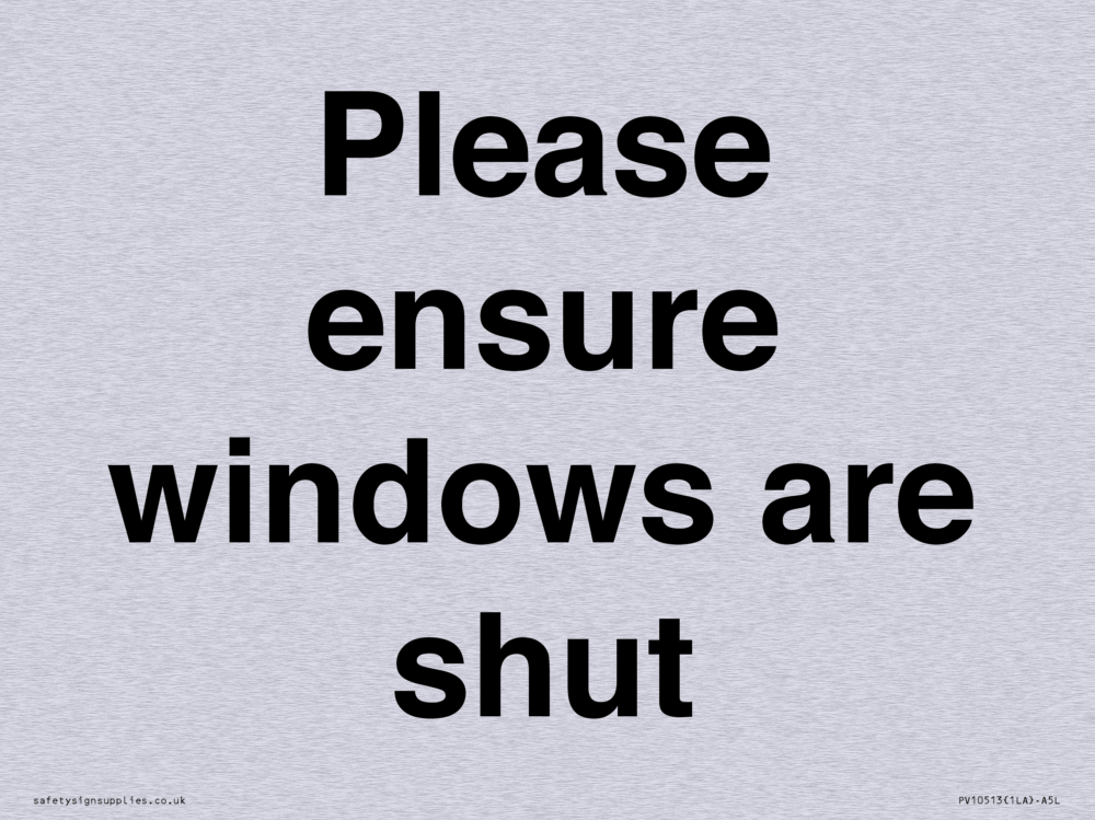 Please ensure windows are shut Sign