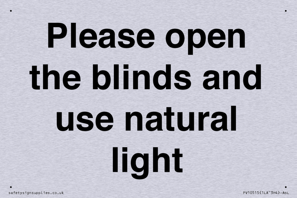Please open the blinds and use natural light Sign
