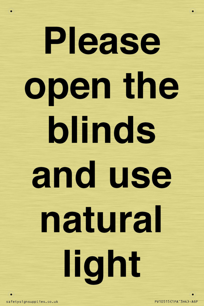 Please open the blinds and use natural light Sign