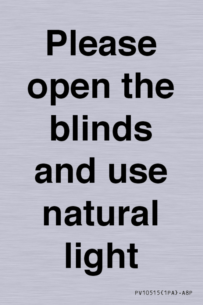 Please open the blinds and use natural light Sign