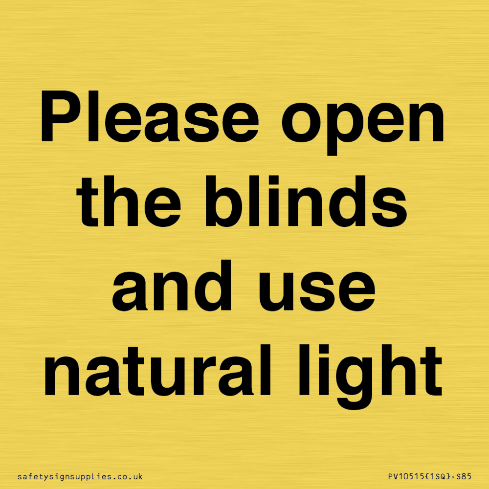 Please open the blinds and use natural light Sign