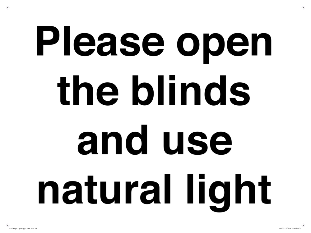 Please open the blinds and use natural light Sign