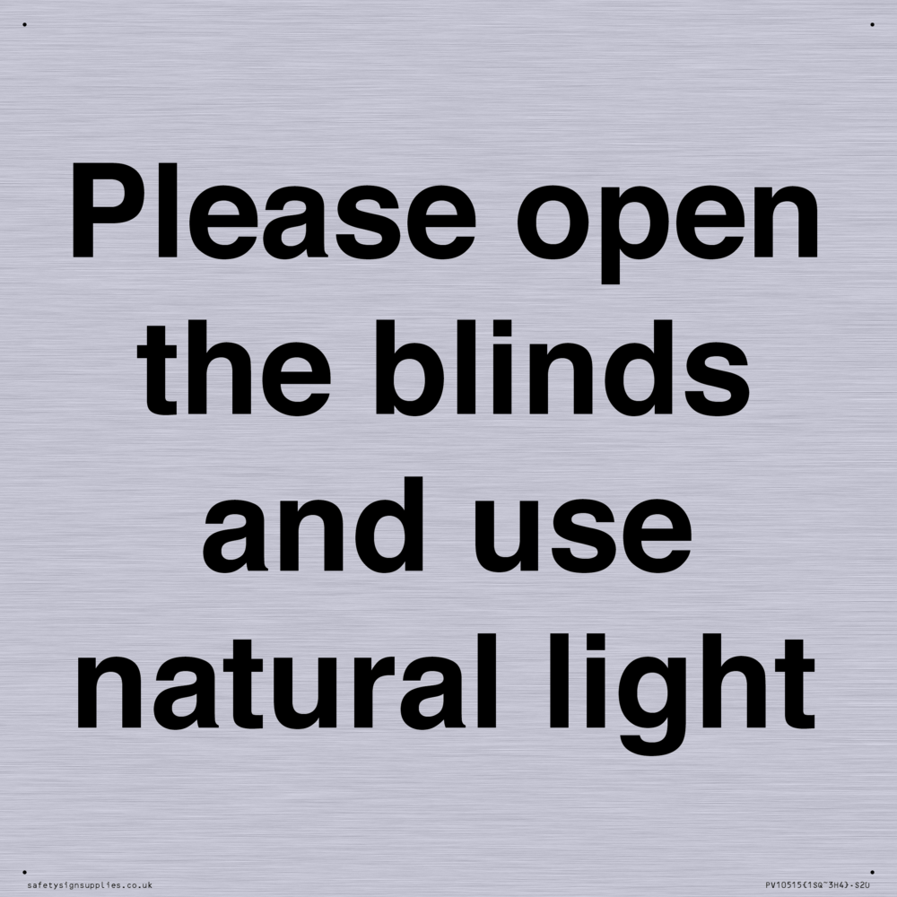 Please open the blinds and use natural light Sign