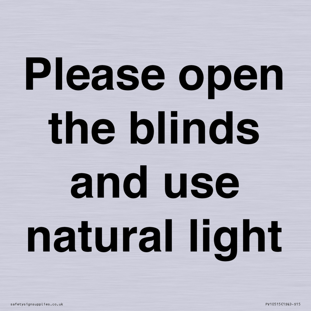 Please open the blinds and use natural light Sign