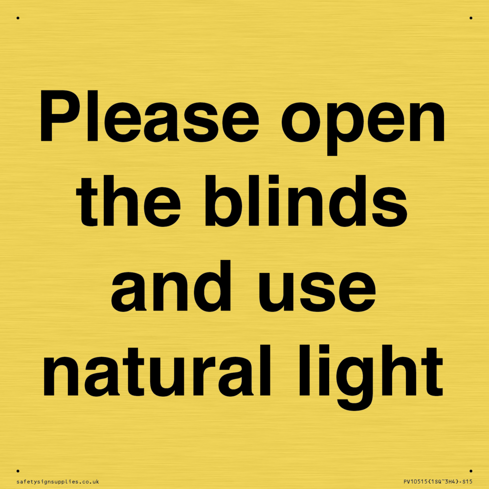 Please open the blinds and use natural light Sign