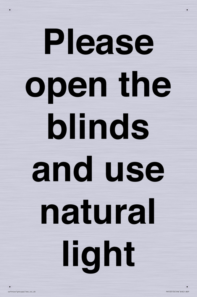 Please open the blinds and use natural light Sign