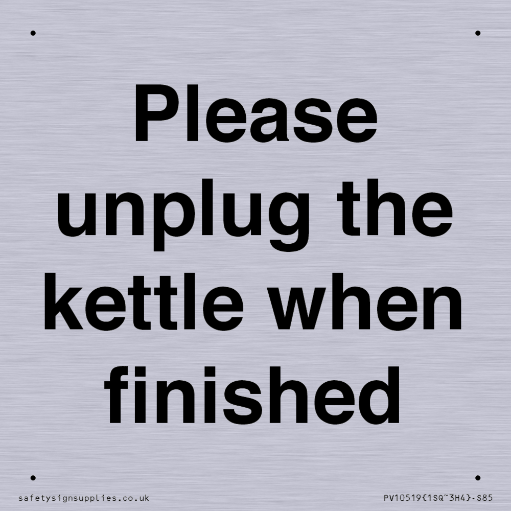 Please unplug the kettle when finished Sign